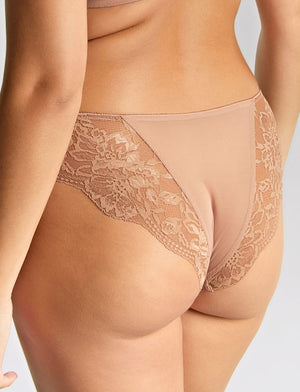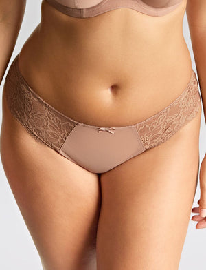 The perfect cheeky moment with the Panache Nina Brazilian Brief in Mocha. Designed with a beautifully soft stretch lace along the back legs for a smooth finish and comfortable fit.