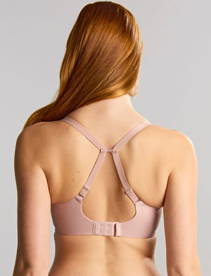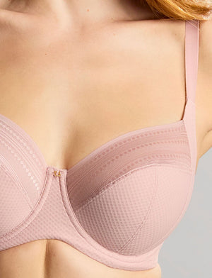 The Serene Full Cup Bra by Panache is a strong and supportive full cup bra that has been constructed from recycled fibres throughout. It features geometrically patterned elastic lace across the cups, now in a new 'Vintage' pink shade, whilst perfectly shaping and lifting.