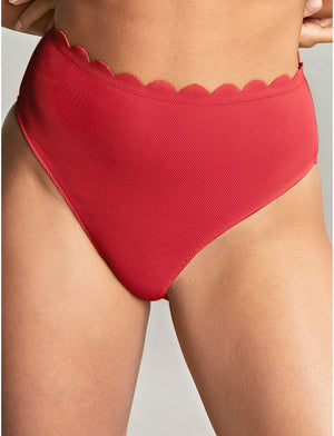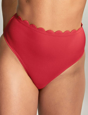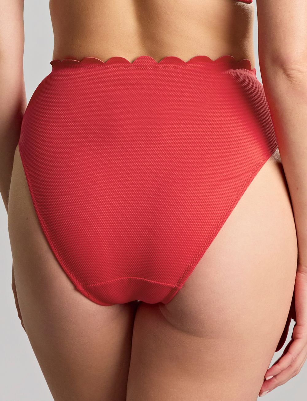 Elevate your swim collection with this stunning high waist brief from the Panache Spirit collection, featuring delicate scalloped edges that frame the waist beautifully. The textured honeycomb fabric offers a subtle visual interest while providing a comfortable, supportive fit.