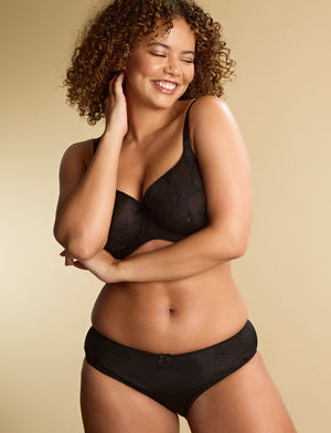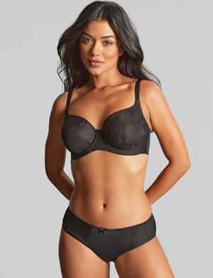 The Panache Tango Balcony Bra in Black blends full coverage with a playful leaf embroidery design. Its lined bottom cups provide extra support, while the double-layered sheer fabric adds a touch of elegance. Perfectly crafted for comfort and lift up to a K cup.