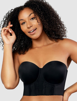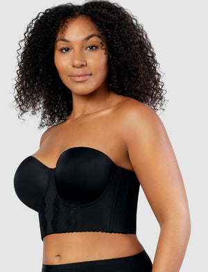 The Parfait Elissa Seamless Longline Strapless Bra in Black is your go-to companion for strapless dresses for any special occasions. This bustier bra lifts and shapes while smoothing your sides and back for a flawless look, while the silicone trims paired with a non-slip gripper at the back mean this longline bra stays put!