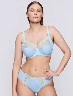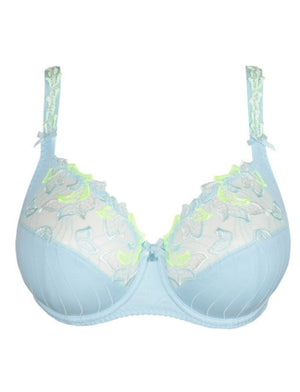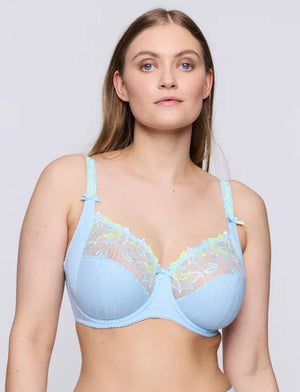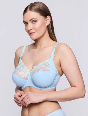 Elevate your bust with the legendary fit of Primadonna's Deauville Full Cup Bra. The Deauville bra features two-tone embroidery on the upper cups and side support for a light and lifted look. Available in Milky Blue with a splash of yellow, perfect for adding a playful touch to your lingerie collection!