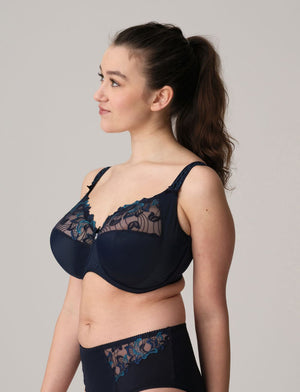 The Deauville Full Cup Bra you know and love from expert designers Primadonna but improved especially for H+ cup sizes - now in a limited Velvet Blue colour! The fit of the Primadonna Deauville is legendary, if you're H+ cup, make sure you try this timeless style!