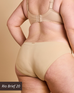 The Deauville Rio Brief combines beautiful embroidered lace panels with soft fabric to create exceptionally comfortable everyday wear. Features sheer mesh sides with delicate embroidery for a feminine touch and in the classic Caffe Latte shade.