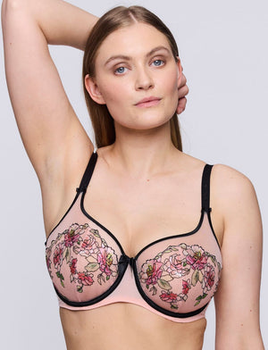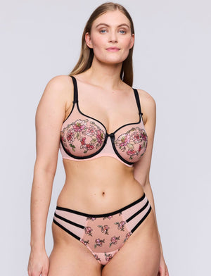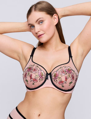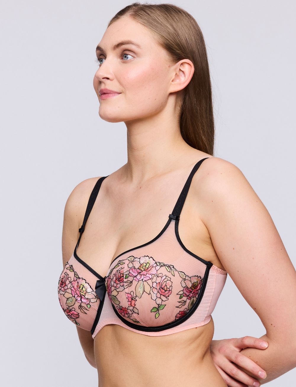 Indulge in style and support with the Primadonna Eraclea Balcony Vertical Seam Bra in Parfait. The stunning floral embroidery, contrasting piping around the cups and straps make this bra a true masterpiece. Experience ultimate comfort and style with every wear.