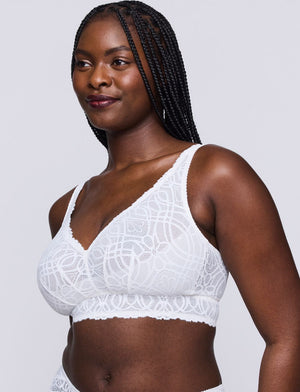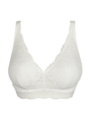 The Salerno Bralette by Primadonna in Natural is a trendy triangle bralette features beautiful lace and a unique, graphic pattern for a modern twist. Comfortable for all-day wear thanks to its flattering V-neckline.