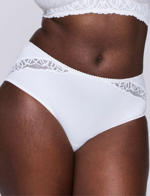 Introducing the must-have Primadonna Salerno Full Briefs in Natural! These elegant and flattering high-waisted briefs are perfect for everyday wear. With a smooth fabric and a delicate lace panel that hugs your curves, they are the ultimate combination of comfort and style.