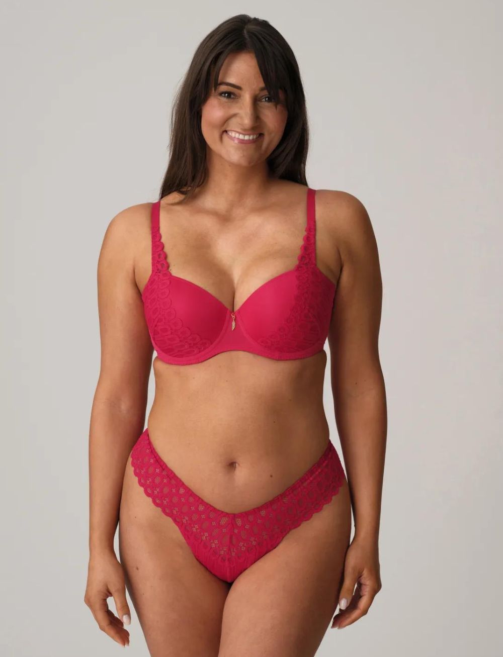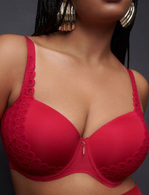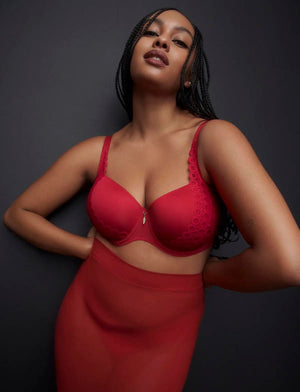Embrace your boldness and sassiness with the Primadonna Twist Los Ayala Half Padded Balcony Bra. The lace pattern cascades up the cup with a striking sangria hue and a touch of sparkle. And just for some extra playfulness, a golden feather accents the bra's centre.