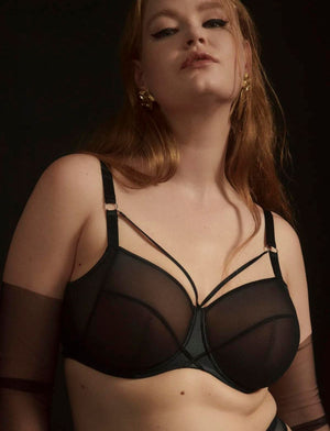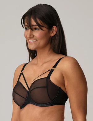 This black Primadonna Twist Zipolite Full Cup Bra is the perfect balance of sexy and minimalistic! With a mix of Italian fabric and opaque tulle, it's the ideal choice for everyday wear or a special occasion. Its minimalist design adds a touch of playfulness to your lingerie collection.