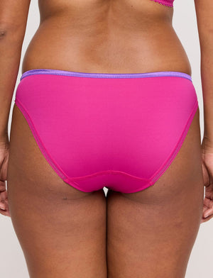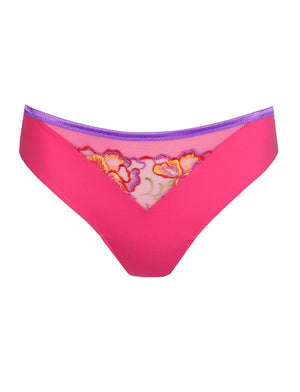 The Primadonna Devdaha Rio Briefs in Very Berry showcase lively orange, green, and lilac floral embroidery set against a bright fuchsia base. These briefs blend playful colours and lively floral designs with a slightly higher cut leg for a confident look.
