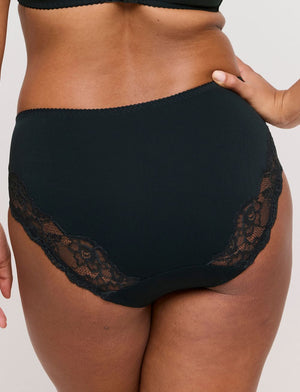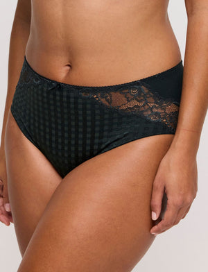 The Full Brief for the Madison collection by Primadonna, in Deep Forest - a dark green shade that is softer than black against the skin! An elegant and comfortable high-waisted brief with the signature Madison checked fabric.