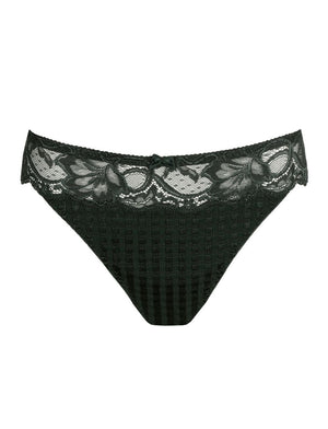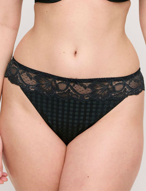 The Primadonna Madison Thong in Deep Forest is a perfect match for the Madison Bra. This thong features the unique Madison checked pattern in the centre panel, delivering both style and comfort.