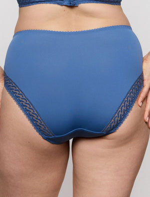 Meet your new everyday essential—the Primadonna Montara Full Brief in Regatta. This high-waisted beauty delivers generous coverage with a touch of elegance, featuring delicate lace panels that celebrate your curves in all the right ways. Smooth, comfortable fabric keeps you feeling fabulous from morning to night, while charming embroidery on the sides adds a hint of sophistication. The perfect foundation piece.