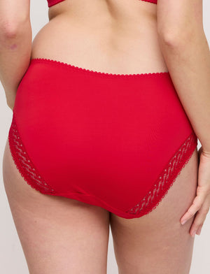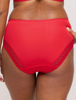 The Primadonna Montara Full Brief is an elegant, flattering high waisted full brief that is an absolute everyday must-have. Designed with smooth fabric and a soft, feminine lace panel that gently hugs your curves. Presenting this season's shade, True Red!