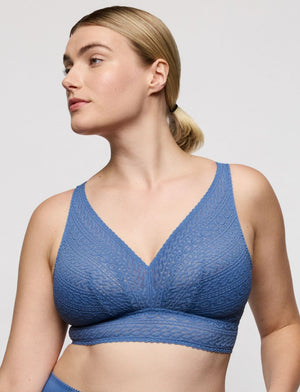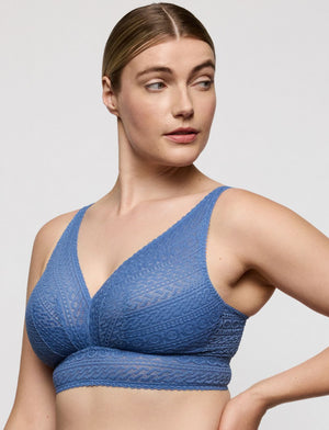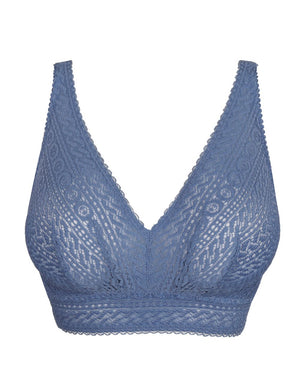 The Primadonna Montara Full Cup Wirefree Bra is a design where comfort meets style – a match made in bra heaven, now in a cool denim shade Regatta! On trend triangle bralette design in all over lace with a modern, graphic pattern design. Perfect for all day comfort and both under and outer wear with its flattering V-neckline! Don’t wait, you need this in your wardrobe.