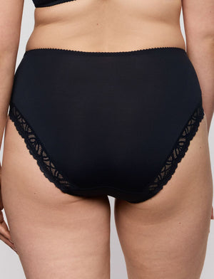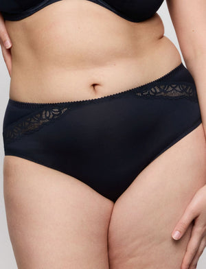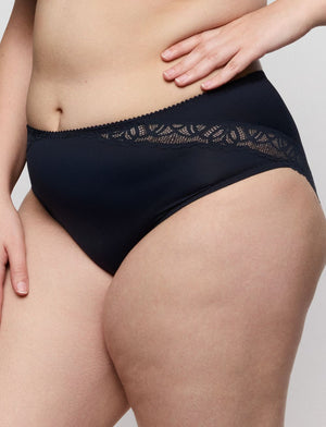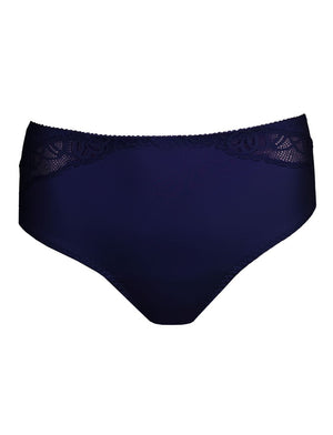 Introducing the must-have Primadonna Salerno Full Briefs in Midnight Blue! These elegant and flattering high-waisted briefs are perfect for everyday wear. With a smooth fabric and a delicate lace panel that hugs your curves, they are the ultimate combination of comfort and style.
