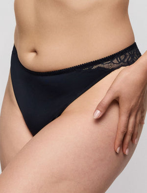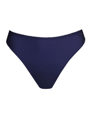 Upgrade your lingerie collection with the Primadonna Salerno Thong in Midnight Blue! This thong boasts a stunning combination of delicate lace and solid fabric for ultimate comfort and fashion. It's a breeze to wear and adds a touch of effortless glamour to your ensemble.