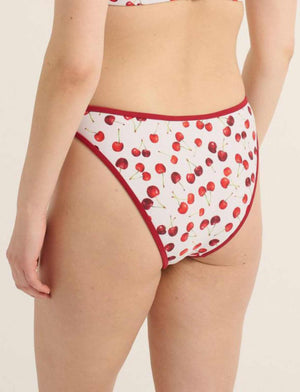 The RAQ 90s Brief offers moderate coverage with a flattering rear cut. The high leg elongates your leg, and sits in the perfect spot below the belly button and high on the hips. You'll love the poolside 90s vibes in this fun and fruity Cheery print this summer!