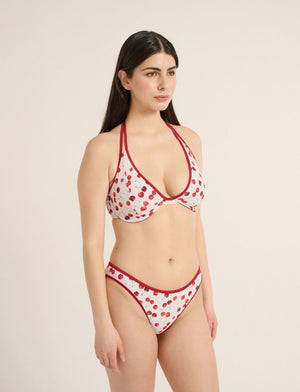 Supportive string bikinis are real, and RAQ’s Multi-Way Bikini Top proves it! Designed for busty, active women, this playful top lets you switch between over-the-shoulder and halter styles with ease by threading the ties through inner loops. With its vibrant Cherry print, it’s your new summer must-have for fun in the sun without compromising support or style.