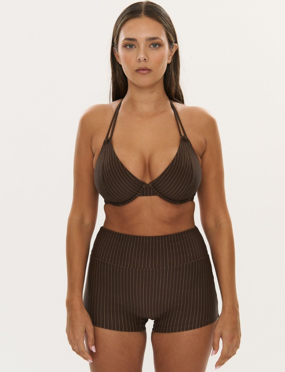 RAQ Multi-Way Bikini Top Choc Pinstripe