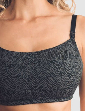 The Blossom Cotton Maternity & Nursing Bra by Royce is flexible and wirefree and available in the stylish Dark Print pattern! It features an adjustable drawstring lets you customise the neckline from a fuller crop style to a V-shaped neckline for your preferred fit. Made with a high percentage cotton blend for superior comfort and breathability, the flexi fit cups adapt to your changing body through maternity and beyond. Easy-to-use feeding clips provide convenient nursing access whenever you need it.