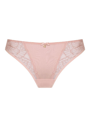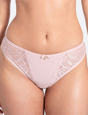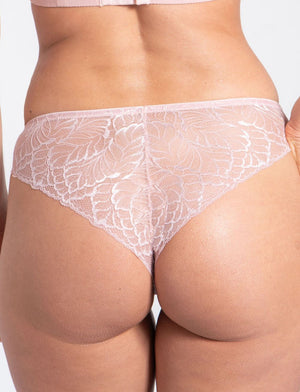 Unleash your inner goddess with Samanta's Amelia Brazilian Brief in a soft Powder Rose shade. This tanga style offers mid coverage, highlighting your curves. The delicate floral embroidery and soft elastic tulle will make you feel heavenly, while staying seamless and invisible under any outfit.
