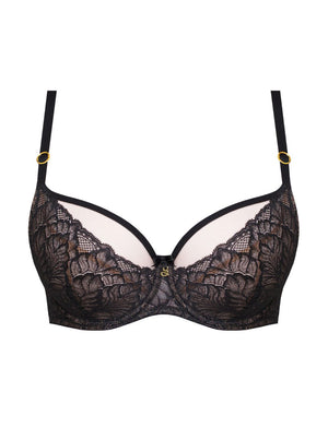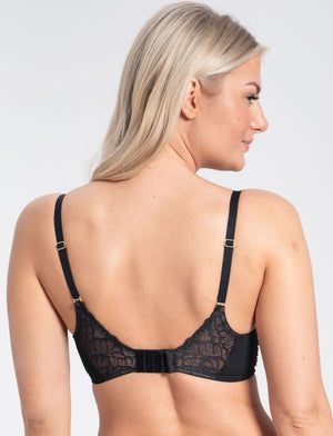 Unleash your boldness with Samanta's Amelia Soft Balcony Bra. Made of German lace in a timeless black, this bra will make you feel like a true adventurer, just like Amelia Earhart. This bra subtly lifts and rounds the breasts and guarantees stable support, it's both elegant and playful.