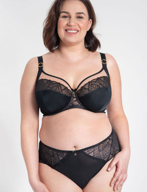 Release your inner boldness with the Samanta Amelia Soft Full Cup Side Support Bra. This bra is crafted from fine German lace in a the classic black, evoking a sense of adventure like that of Amelia Earhart herself. Not only does this bra provide a gentle lift and a round shape, but it also promises reliable support with a touch of elegance and playfulness.