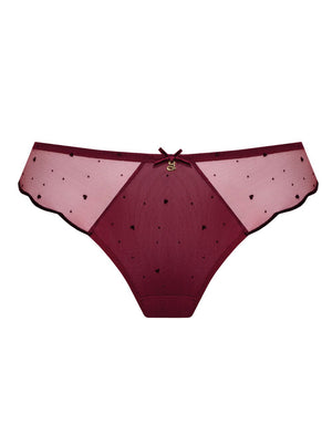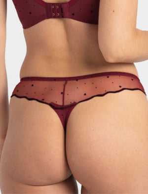 A perfect match to the Samanta Melania collection, this thong in claret has shimmering red flecks throughout that will have you feeling confident and comfortable. The soft tulle lace lovingly hugs your body, making it a must-have for your lingerie collection.