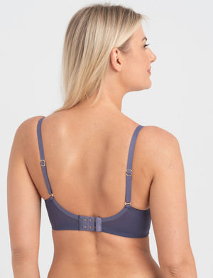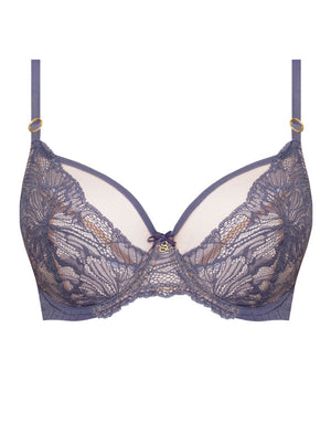 Unleash your inner enchantress with the Mila Soft Balcony Bra in the soft Anthracite shade by Samanta. This delicate bra offers gentle lift and shaping with its stable support, while the soft purple cornflower Italian lace adds a whimsical touch. The sensual transparent cups beautifully combine comfort and allure, making it a charming addition to your lingerie collection.