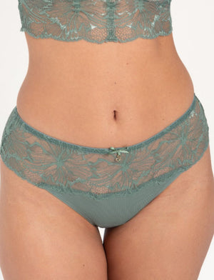 Experience pure luxury with the Samanta Mila Thong in the soft shade of Sage. This perfectly designed thong brings a sensual touch with its raised waist while the soft lace adds comfort and confidence. Perfectly paired with the Mila collection for a complete look!