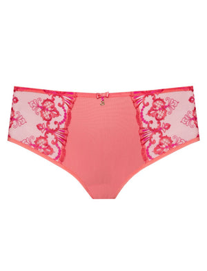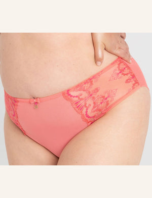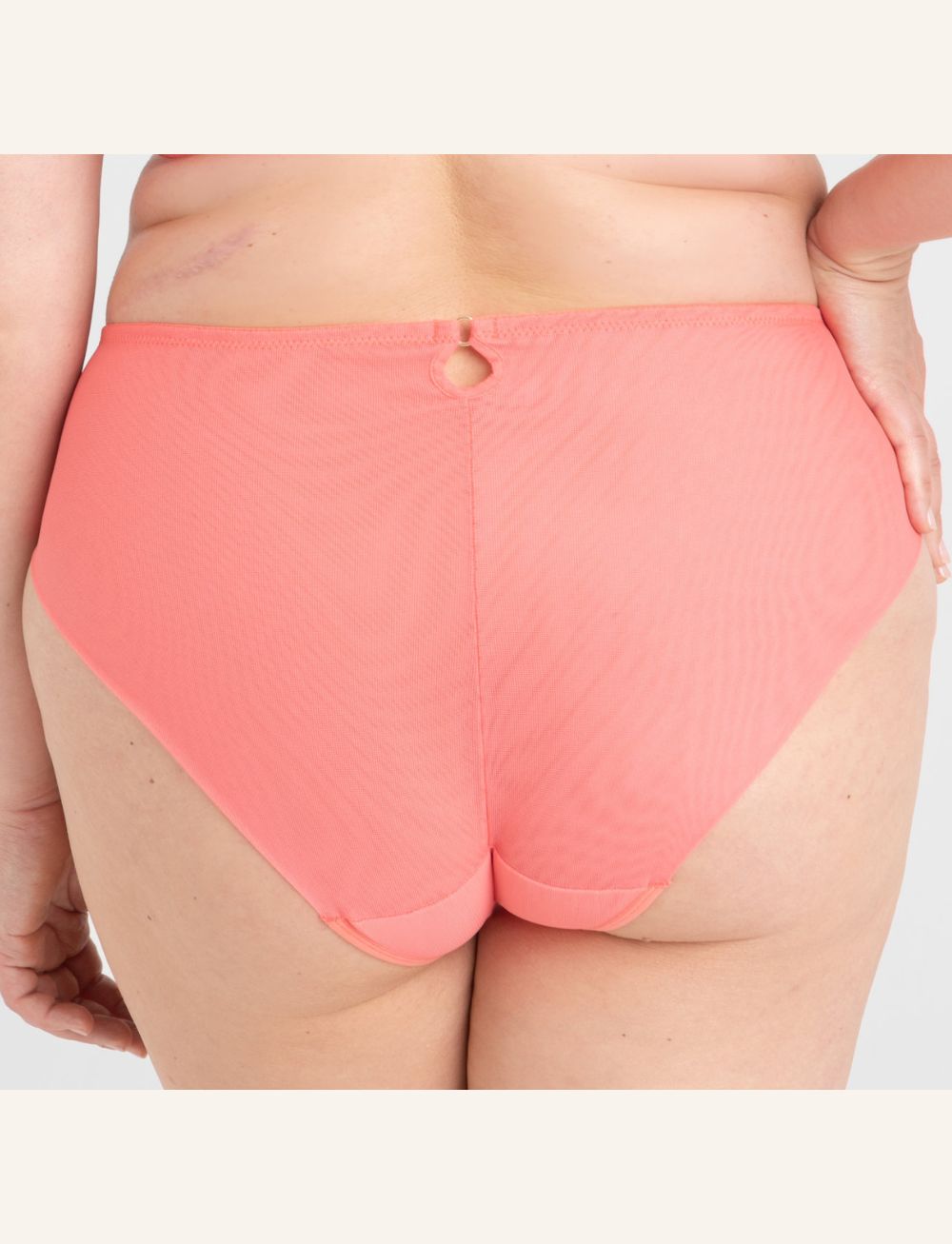 The Perla Briefs in the bright Coral tone by Samanta are midi briefs that sit just below the navel and are perfect for women who value comfort. The signature swiss embroidery with an ornament motif creates a phenomenal tattoo effect on the body, whilst the material across the bottom is seamless and invisible under clothing.• Swiss embroidery across front