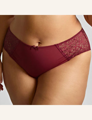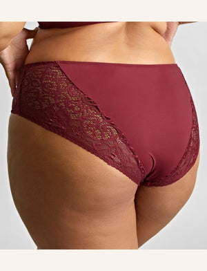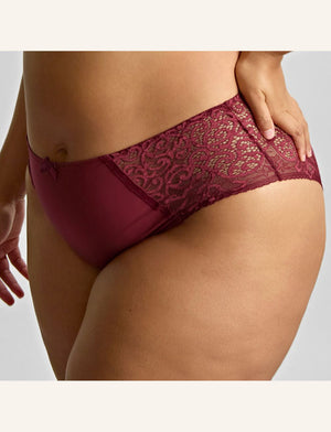 The Sculptresse Estel Deep Brief in the rich Cherry Red shade, is the perfect blend of comfort and style. The lace detailing adds a touch of femininity while providing excellent coverage for a flattering fit. A must-have addition to your wardrobe.