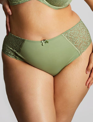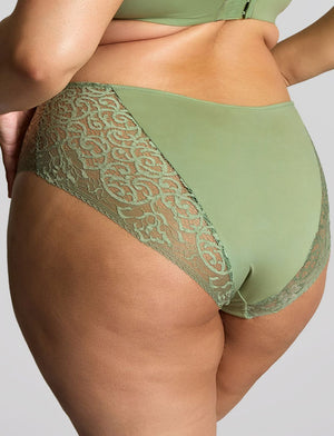 The Sculptresse Estel Deep Brief in the soft Sage shade, is the perfect blend of comfort and style. The lace detailing adds a touch of femininity while providing excellent coverage for a flattering fit. A must-have addition to your wardrobe.