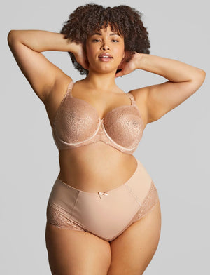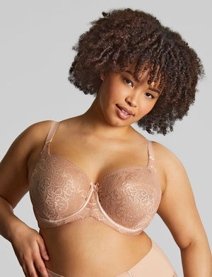 The Sculptresse Estel Bra in the warm honey shade, is a full cup style with ornate patterns inspired by middle eastern trends, for a comfortable yet unique look. Estel is a true problem-solver bra - a reliably great fit that women of all shapes & sizes appreciate.