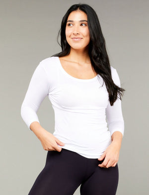 Tani 3/4 Sleeve Scoop Neck Top White