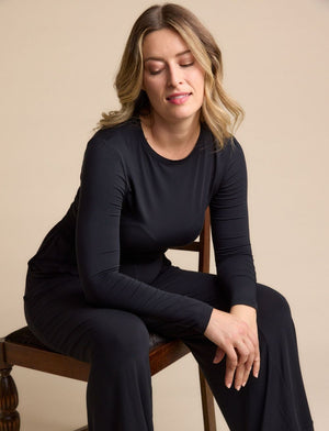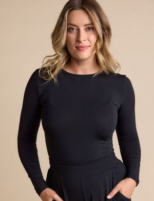 The High Neck Long Sleeve Top by Tani is great worn on its own, or a perfect basic for layering. A fitted top with a high neckline; created from renewable Beechwood, the soft Tani fabric can be worn year-round.