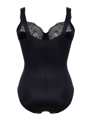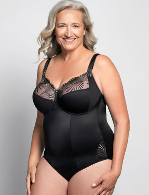 Introducing the Ulla Emily Bodysuit in Black –this stunning piece features a three-part cup design with a concealed side panel and under-cup depth for a flattering, secure fit. The double-layered front and wrap-around construction deliver both comfort and style while creating a seamless silhouette under any outfit.