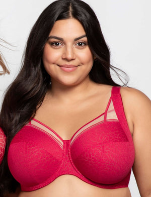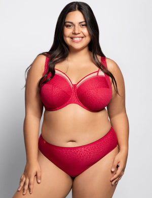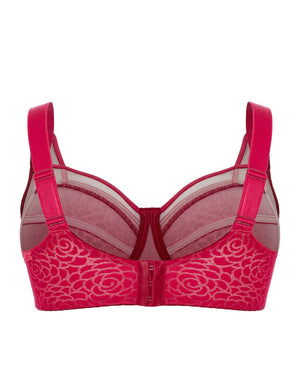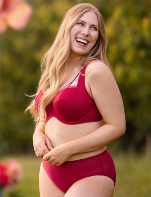Embrace a playful touch with the Ulla Romy Bra Cranberry. Its sturdy, lined cups provide gentle support, while the delicate tulle trim and ribbon edges creates a charming illusion of strappy details. This bra highlights a romantic rose design across the cups, making this bra as flirty as it is flattering.