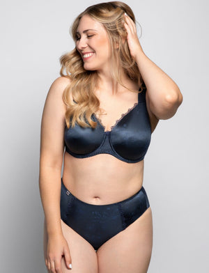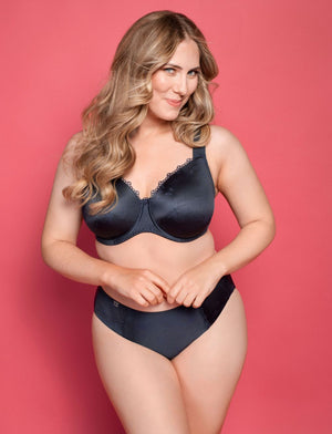 The Ulla Viola Bra in Midnight - the perfect blend of style and comfort! Made with shimmery microfibre fabric and a beautiful floral print, this bra provides invisible support and a seam-free appearance. Its cups mould to your shape for a flawless fit, making it perfect for everyday wear.
